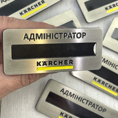 Мітки: Бейджі металеві із травленням з віконцем для працівників клінінгової компанії