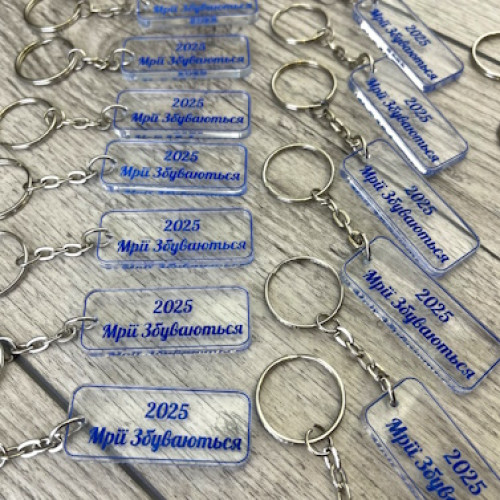 Брелоки акрилові із лазерним гравіюванням і втиранням фарби