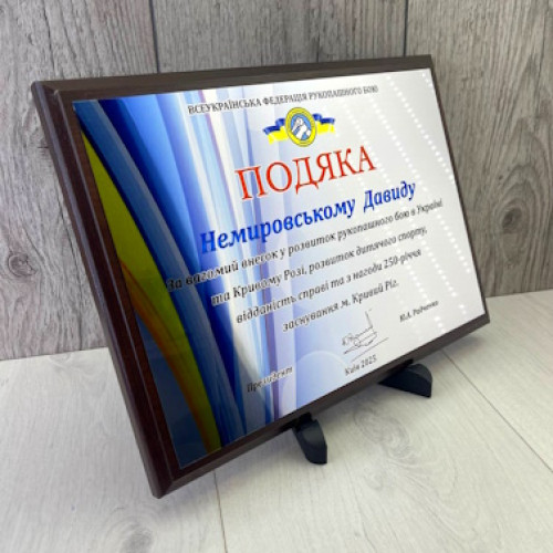 Замовте плакетку з подякою від Всеукраїнської федерації рукопашного бою в "Бейджі.com.ua" вже сьогодні - і дозвольте Вашій подяці набути форми, яка залишиться в пам'яті на довгі роки.