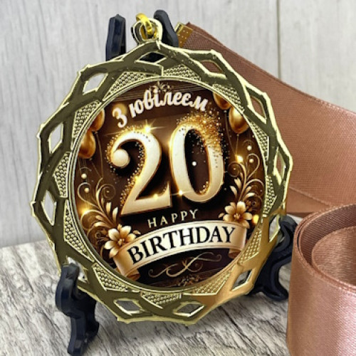 Мітки: Сувенірна медаль з жетоном для привітання з 20-ти річчям.